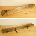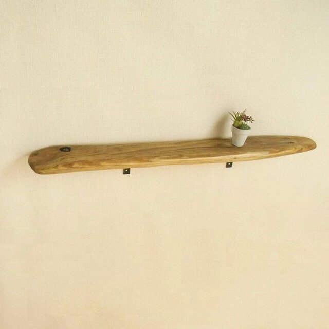 ダメージ風(スレ、キズ、使い古した感じ)の黒系色に塗付したL字金具を付け、壁掛け棚に仕上げました。