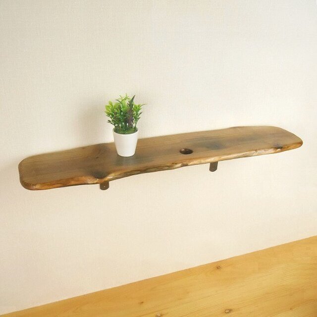 ブロンズ色のL字金具を付け、大判の壁掛け棚に仕上げました。