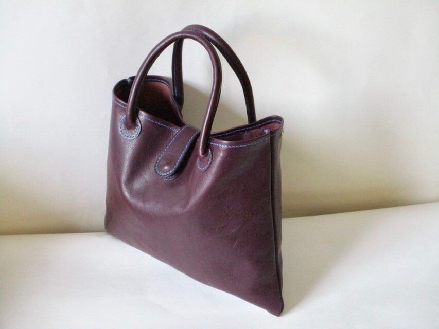 イタリア革の小さめトート(プルーニャ)紫系プルーン色