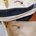 パッチワーク部分は、ただのデザインに見えて、実は外ポケットになっております。(写真4参照)
