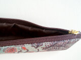 生地の色は地の色が、グレー(少しグリーンっぽい色)、木々や花の色にブラウン、オレンジ、レッドパープルなどが使われています。