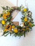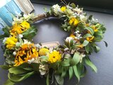 ひまわり、貝殻草、ナンキンハゼ、キンポウジュなどをアレンジしたナチュラルなリースです。