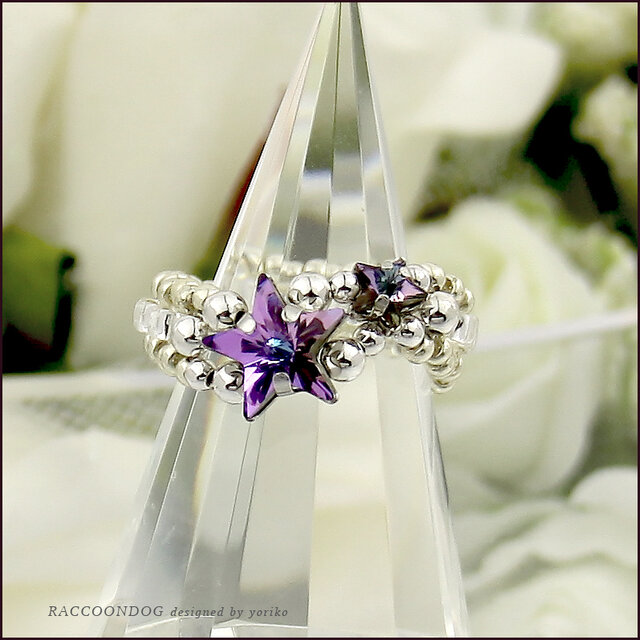 ビーズ,リング,コスチュームジュエリー,ビーズアクセサリー,ビーズリング,食事会,ランチ,パーティー.お出かけ.紫.ヴィトレイルライト.スワロフスキー,星,スター