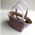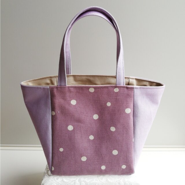 薄紫色の帆布にややくすんだ感じのパープルのドット柄を組み合わせました。