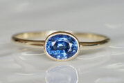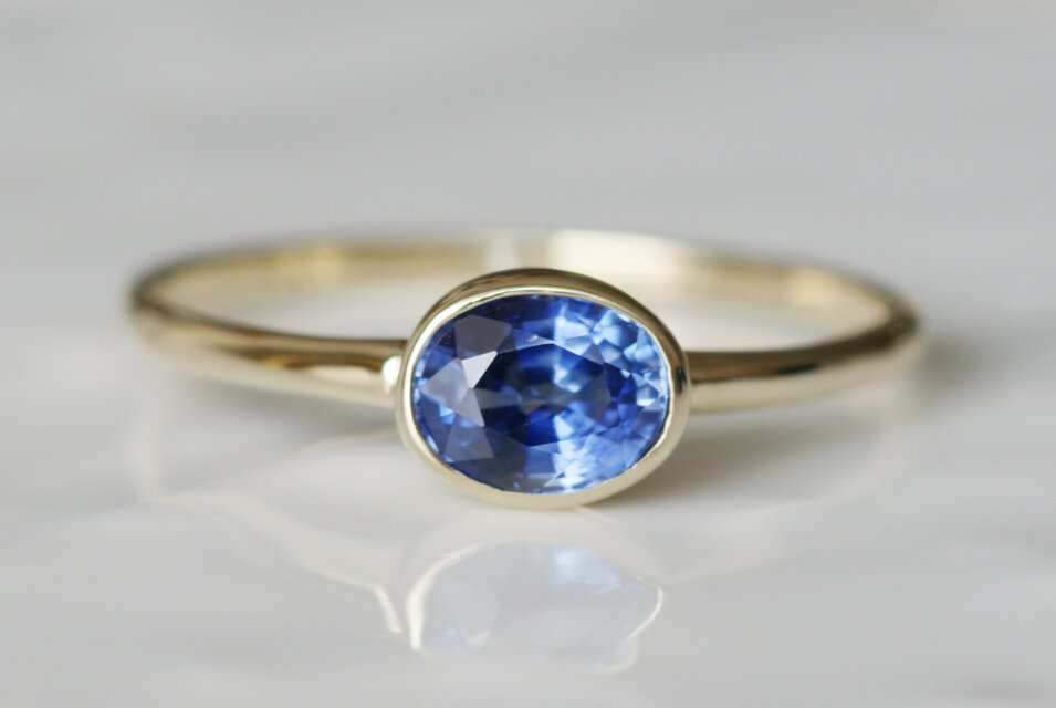 オーバルカットのブルーサファイアを覆輪留めに致しました。