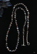 ピーコックブラウンのケシパールは、クラシカルのようなモダンなような、そして女性らしい艶っぽさも感じさせながらピアスやブレスレットのコーディネートをつなぐ役目も出来る存在。ピアスとブレスレットの2点では拡がらないコーデも、こんなネックレスがあれば組み合わせがぐっと拡がりそうです。