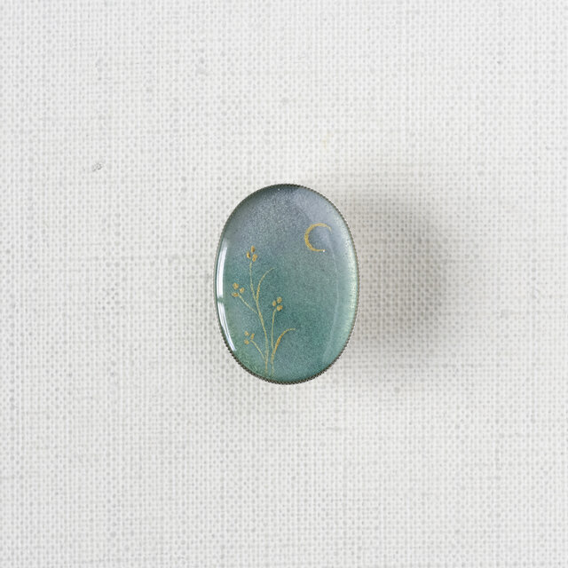 三日月と三つ葉を描いた絵(原画)を樹脂でとじこめました。