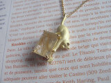 ブルートパーズの上で足を踏ん張り、蝶に手を伸ばしている猫のペンダントです。