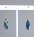 カイヤナイトの表面はツルンと光沢がある仕上がりで、全体的に繊細で流れるようなフォルムが特徴のフックピアスです。