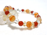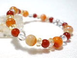 艶やかなオレンジ&レッドカラーに個性的な白い模様が浮かぶサードオニキス、華やかなイエローカラーのシトリン、上品なレッドカラーのアゲートを組み合わせた天然石ブレスレットです。