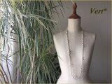 ロングネックレス1に用いたパールよりやや小さめのパールを使用しておりますので若干ラインが細く仕上がっています。(5枚目画像参照ください)
