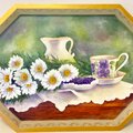 額縁の絵のようなので、テーブルに置いても、キッチンに立て掛けてあっても、優雅なガーデンティータイムの雰囲気を思い起こさせて、素敵だと思います。
