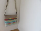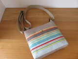 バイオウオッシュ加工の8号帆布とフランス製のストライプ柄帆布でショルダーバッグを作りました。