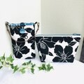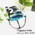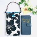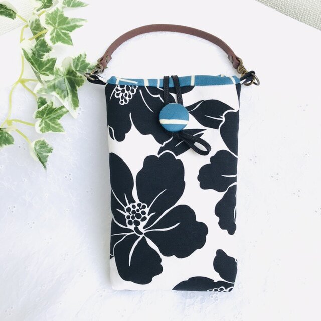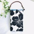 大きなモノクロのハイビスカス柄のスマホポーチです。