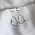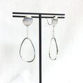 Silver950 の板で作ったゆるい四角モチーフからゆる三角楕円のワイヤーモチーフが下がるピアスです。