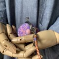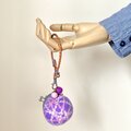 手のひらサイズの球体の羊毛フエルトがま口で、バックの外付けができるタイプです。