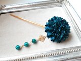 #夏アクセサリー #浴衣 #かんざし #お花 #布花 #アーティフィシャルフラワー #とんぼ玉 #エメラルド