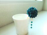 *張りのある布製のお花とエメラルド色のとんぼ玉でかんざしを作りました。