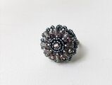ビーズ刺繍を施したくるみボタンをリングに仕立てました。