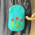羊毛刺繍のフェルトスマホポシェット(スカイブルー)