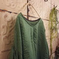 グリーンに合う、チャコールのリネンでパイピングしました。