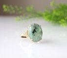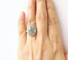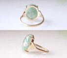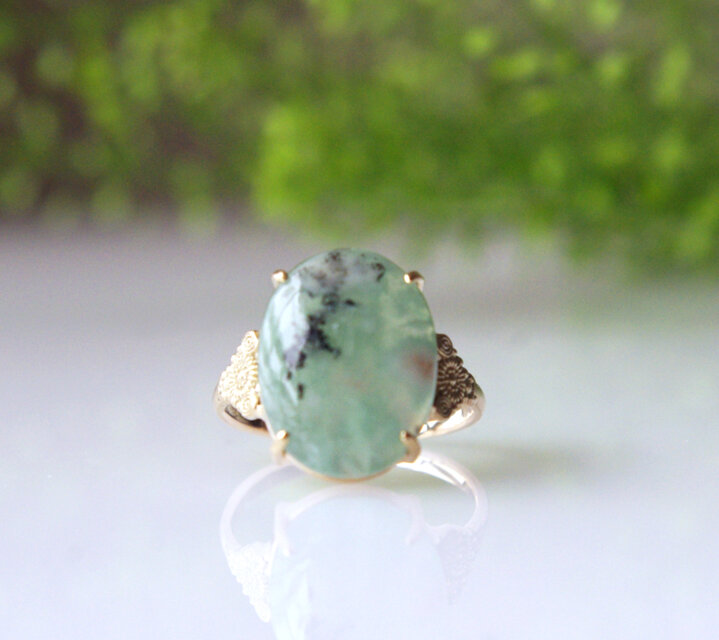 商品画像や説明の通りで、素敵なリングでした。氷ひすいの優しい色と、アームは実は仏さまがいるという、個性的なデザインに惹かれました。また、仕上げの艶消し加工が本当に綺麗です。指にスッと馴染み着け心地も良いです。たいへん気に入りました。大切にします。丁寧なご対応もありがとうございました。