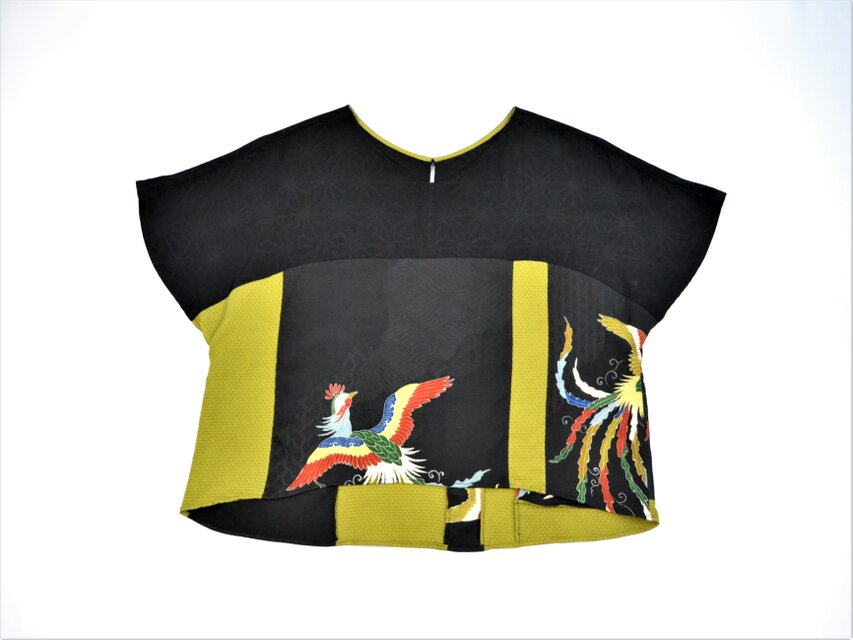 着物地トップス:鳳凰・水洗いOK・麻模様・着物リメイク・和柄・2日以内発送・国内送料無料 / 1907sh02