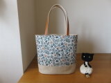 リバティ エデナムとバイオウオッシュ8号帆布で楕円底のバッグを作りました。