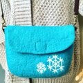 羊毛フェルトの雪の結晶モチーフのポシェット(ブルー)