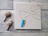 14KGF ロングネックレス■ ロングスクエア チェーンタッセル ■ ターコイズ
