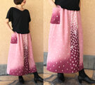 きものリメイクロングスカート、桃色(ピーチピンク)寿柄、オールシーズン