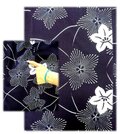 紺地に白の大きな桔梗が花火のように、沢山染ぬかれた2色使いでありながら、