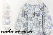 リバティタナローン人気柄 <Celine>(セリーヌ)で巻きロック仕上げのフリル襟リボンラグランブラウスを作りました。 ホビーラ限定色 アイボリー(ホワイト)にパープル系。