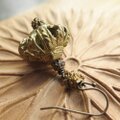 西アフリカの少数民族に伝わる真鍮ビーズをつなげました。