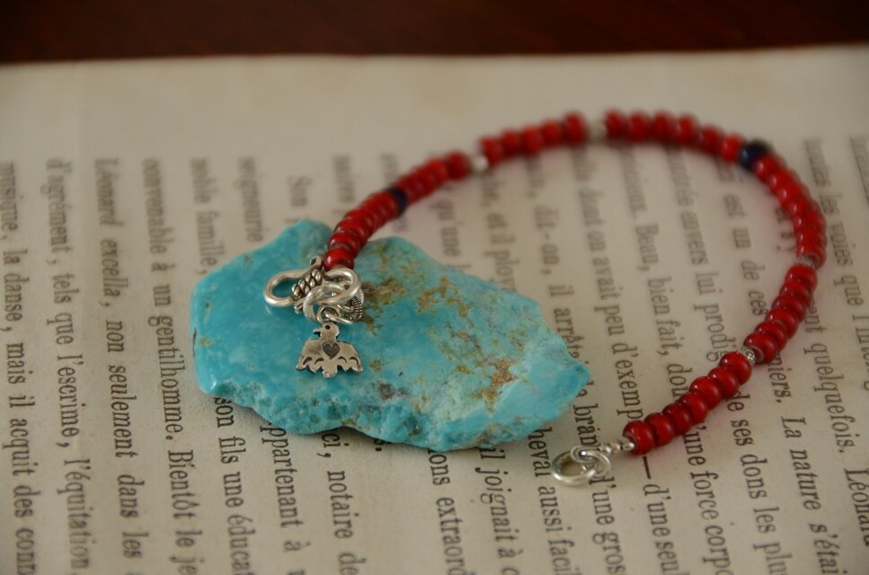 インディアンジュエリーにとらわれず、私らしさがしっかりと表現できた作品で、様々なパーツや意味合いをこめて制作しております。