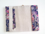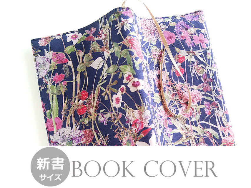 リバティの人気生地、 ワイルドフラワーズ Wild Flowers(ネイビー)とハーフリネンの生地で新書本サイズのブックカバーを作りました。