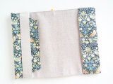 リバティの人気生地、 ストロベリーシーフ Strawberry Thief(グリーン)とハーフリネンの生地で新書本サイズのブックカバーを作りました。