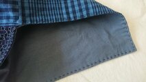ネイビーの生地に銭刺しを刺してあずま袋を作りました。