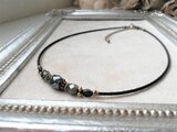 ネック部分は、とても細かなシードビーズを使い、細身でシャープな印象にしあがっております。