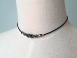 *濡れたような輝きがとてもきれいなヘマタイト(磁気なし)を中央に使いました。ウェーブ加工がされており、輝きが引きたっています。
