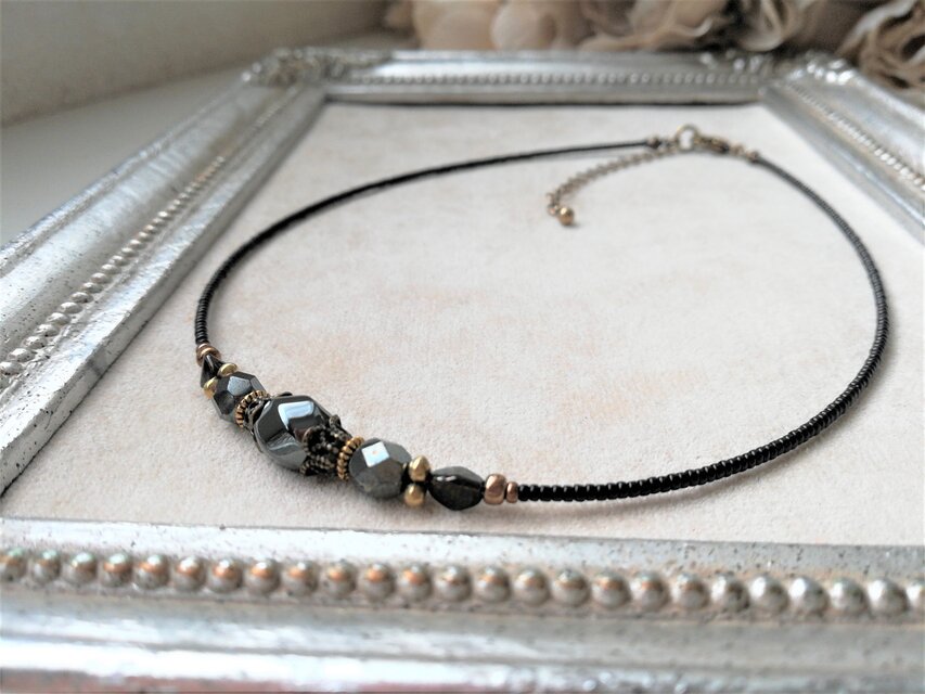 他には、同系色のヘマタイト色のチェコビーズを使っています。