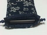 紺地に千鳥柄の生地で仕立てた巾着タイプの御朱印帳袋です。