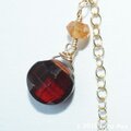 ピアスパーツに2本になるようにチェーンを下げ、宝石質ヘソナイトAAAのボタンカットを下げ、その下に宝石質モザンビーク産ガーネットAAAのコインカットを下げました。