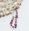 ちらちらと見え隠れする小さなシルバー色パーツ、グレイッシュトーンのなかで光を受けてきらきらするアメジストのブリオレットカット。シンプルなコーデに抑えたピンクとパープルが大人のスイートを添えて、白い肌にも日焼けした肌にも映えます。リゾートでもどうぞ。