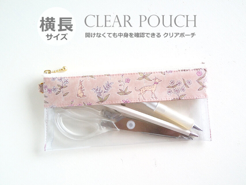 リバティ ペンケース 横長サイズ クリアポーチ ミルフルール ライトピンク