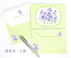 紫色のスイートピーを描いた水彩画をもとにレターセットを作りました。