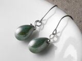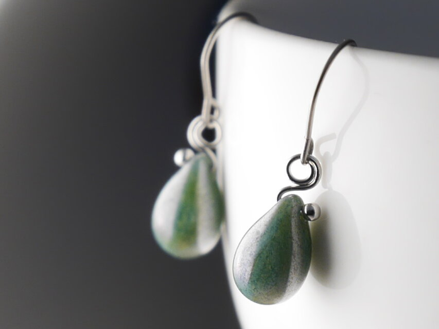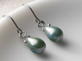 チェコガラスのしずくピアス グリーンブルーラスター