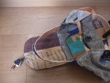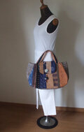 藍染、柿渋染めの木綿布を色々集めて蓋つきトート作りました。