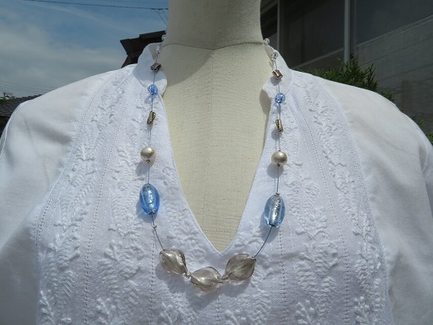 ベネチアン風ガラスにコットンパールを入れて軽さを出したセミロングタイプです。