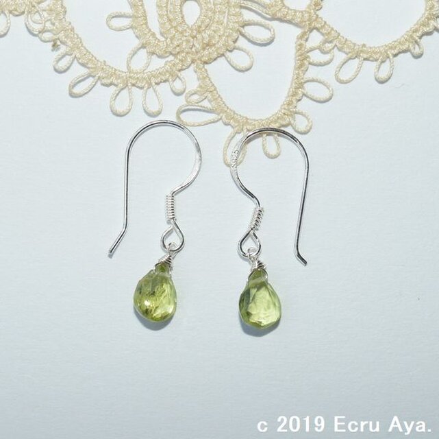 ピアスパーツに、シンプルに一粒、ペリドットを下げました。